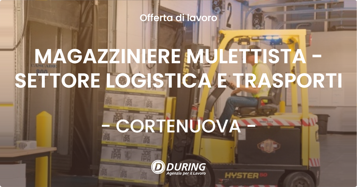 Selezioniamo per azienda cliente operante nel settore logistica e trasporti:MAGAZZINIERE MULETTISTA in possesso del Patentino per il Muletto in corso di validità.La figura selezionata si occuperà principalmente delle seguenti mansioni:Movim