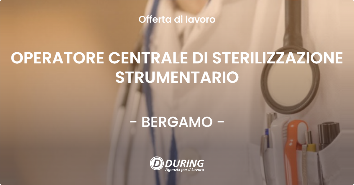 Si ricercaOPERATORE SETTORE SANITA’/OPERATRICE SETTORE SANITA’ per sterilizzazione kit chirurgici presso centrale di sterilizzazione dell’ospedale di Bergamo. L’operatore settore sanità/l’operatrice settore sanità si occupa del lavaggio del