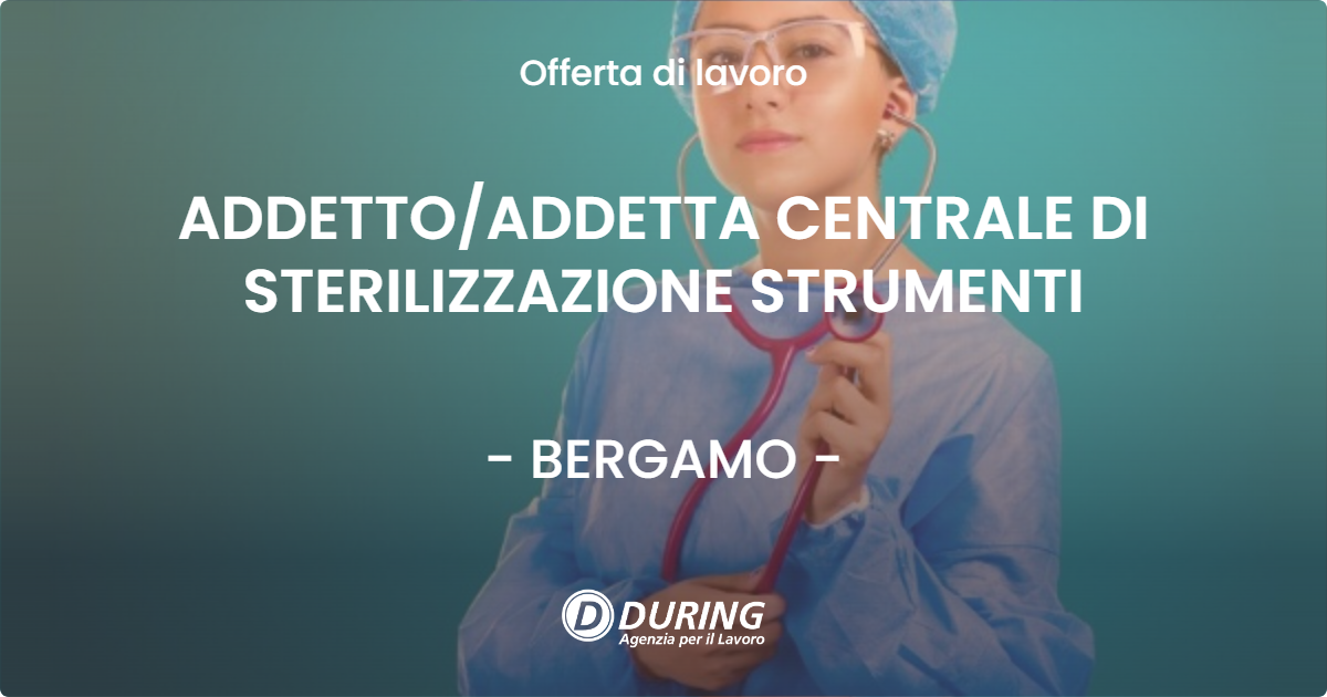 During S.p.a. Filiale di Milano ricerca e seleziona un OPERATORE/ una OPERATRICE per centrale di sterilizzazione.La risorsa selezionata sarà inserita all’interno della centrale di sterilizzazione e si occuperà di:lavaggio, confezionamento e